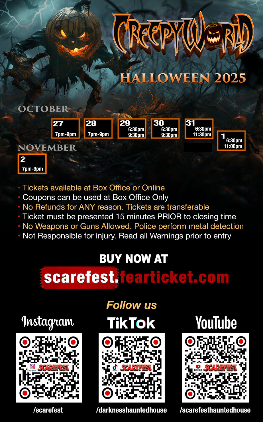 Prices: With Creepyworld Tickets only $5.00 without Creepyworld Ticket $10.00